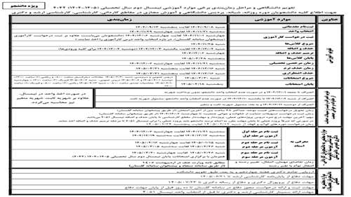 تقویم نیمسال 4042 ویژه دانشجو